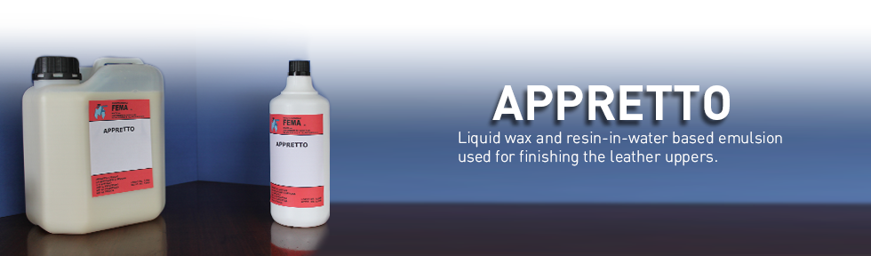 Liquid wax and resin-in-water based emulsion used for finishing the leather uppers.
