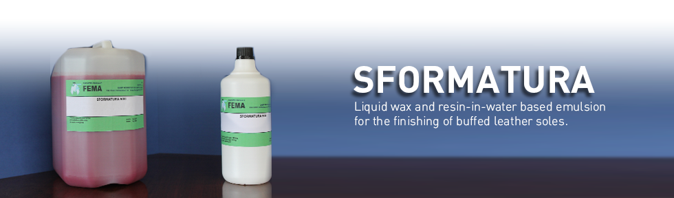 Liquid wax and resin-in-water based emulsion for the finishing of buffed leather soles.