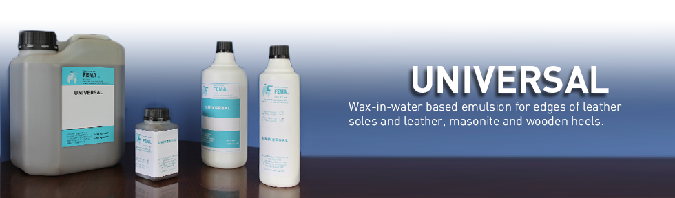 Wax-in-water based emulsion for edges of leather soles and leather, masonite and wooden heels.